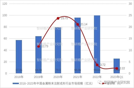 圖表:2018-2023年中國金屬粉末注射成形行業(yè)市場規(guī)模