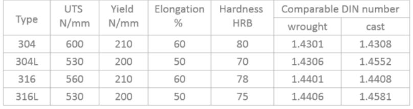 作為低碳的304鋼,在一般狀態(tài)下,其耐蝕性與304剛相似,但在焊接后或者消除應(yīng)力后,其抗晶界腐蝕能力優(yōu)秀;在未進(jìn)行熱處理的情況下,亦能保持良好的耐蝕性,使用溫度-196℃~800℃。
